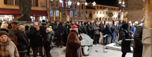 CIVIDALE – Conto alla rovescia a Cividale per la sua grande manifestazione epifanica che, il 6 gennaio, dopo la sempre suggestiva “Messa dello Spadone” culminerà con la rievocazione dell’ingresso del Patriarca Marquardo. Un appuntamento con storia e tradizione amato dai cividalesi e dai friulani, ma anche dai turisti che sempre numerosi arrivano in riva al Natisone. E un richiamo di indubbio valore, che concorre a esaltare il nome della città longobarda, è anche la festa che la sera di Capodanno si rinnova sotto l’antica loggia del palazzo municipale, di fronte al Duomo di Santa Maria Assunta, come ha sottolineato anche il sindaco Daniela Bernardi che ha avuto l’onore di tagliare la prima fetta della “gubana più grande del mondo”. L’organizzazione del bellissimo evento è dovuta, come è noto, allo storico Caffè San Marco con il coordinamento del Circolo culturale Corno, presieduto da Sergio Paroni. Ma l’hanno favorito anche il gubanificio Dorbolò di San Pietro al Natisone, che ha nuovamente confezionato il dolce extra-large, e l’azienda vitivinicola Sergio Scarbolo di Spessa che ha fornito la Ribolla gialla spumante per i brindisi beneauguranti, mentre il Comune di Cividale ha concesso il patrocinio ufficiale alla ormai tradizionale e irrinunciabile manifestazione di inizio anno che ebbe nel compianto Berto Blasutig, del vicino forno Cattarossi, il suo più convinto e tenare promotore.