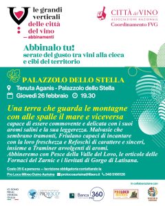 Prossimo appuntamento, assieme alla Città del Vino di Palazzolo dello Stella che ha scelto come location la Tenuta Aganis, giovedì 26 febbraio alle 19.30. Il curatore Matteo Bellotto, filosofo ed esperto di vino, ha dato come titolo alla serata “Una terra che guarda le montagne con alle spalle il mare e viceversa”. I vini delle cantine Ca Modeano, Mr Bio e Isola Augusta incontreranno le proposte dei produttori del Pesce della Valle del Lovo, le Fornaci del Zarnic con le sue orticole e i lievitati di Gorgo di Latisana. Un’iniziativa sostenuta dalla Regione Autonoma Friuli Venezia Giulia, PromoturismoFvg e Banca 360 Fvg, in collaborazione con Unione nazionale tra le Pro Loco d’Italia Comitato regionale del Friuli Venezia Giulia, Pro Loco Mitreo di Duino Aurisina e il gruppo no profit Degustare in compagnia. Ci sono ancora alcuni posti disponibili (costo 35 euro a persona) per cui gli interessati sono invitati a contattare quanto prima la Pro Loco Mitreo Duino Aurisina, prolocoaurisina@libero.it – telefono 348.5166126.