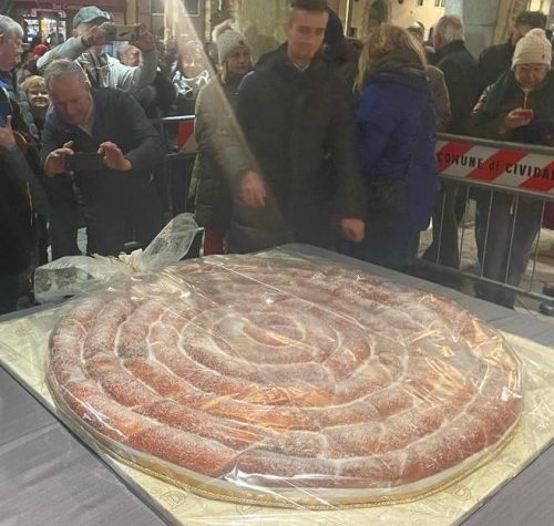 Il dolce sarà poi tagliato a fette e offerto in degustazione agli avventori che si presenteranno nell’allegra circostanza. Il brindisi beneagurante sarà garantito, invece, dalle bollicine di Ribolla gialla offerte dall’azienda Scarbolo di Spessa. L’evento avrà per la prima volta il patrocinio ufficiale del Comune di Cividale del Friuli, segno del rilievo turistico raggiunto da questa iniziativa sospesa solo nei due anni della pandemia.