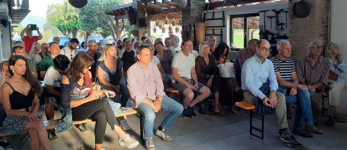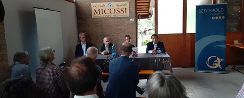 Una presentazione che non è avvenuta, come si potrebbe pensare, nella sede di un ente pubblico o di un’organizzazione che si occupi di economia, bensì in una bella azienda agricola del Tarcentino: all’agriturismo Micossi che s’incontra sulla strada che sale da Nimis alla volta di borgo Clotz e prosegue per Sedilis, nel cuore del “cru” che ci dona quel gioiello che il Ramandolo, da un quarto di secolo premiato dalla Docg, la denominazione di origine controllata e garantita, il massimo riconoscimento per un vino di qualità. E il Ramandolo, ottenuto nei vigneti ai piedi della Bernadia tra Nimis e Tarcento, è il primo ad averlo ottenuto in Friuli Venezia Giulia, dopo un lungo iter legislativo, nell’ormai lontano 2001. L’incontro è stato organizzato da Geko Gold – una realtà attenta alla cultura economica e ai percorsi di consapevolezza personale e collettiva (le cui sedi si ritrovano nella Repubblica di San Marino, a Rimini e a Padova), sul posto con suoi rappresentanti – con un protagonista d’eccezione del pensiero contemporaneo, il filosofo opinionista e saggista torinese autore di numerosi volumi che fanno luce sulle complicate tematiche d’oggi, divenendo uno degli intellettuali più discussi del panorama italiano, capace di accendere il dibattito e stimolare nuove visioni sui temi economici, sociali e culturali del nostro tempo.
