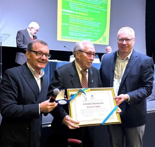 «Riconoscere l’impegno di chi ha dedicato tempo e passione alla comunità significa rafforzare il senso di appartenenza e trasmettere alle nuove generazioni i valori della partecipazione civica, della solidarietà e della responsabilità verso il bene comune», ha sottolineato il presidente del Consiglio regionale Fvg, Mauro Bordin, intervenendo alla significativa cerimonia, presenti anche i colleghi consiglieri Moreno Lirutti e Serena Pellegrino. Ma fra gli altri ospiti e il folto pubblico giunto a festeggiare Angeli c’erano anche Renata Capria D’Aronco, presidente del Club per l’Unesco di Udine,  l’ingegner Giorgio Arpino, leader della Lilt udinese, e il presidente della Società Filologica Friulana Federico Vicario. Gli onori di casa sono stati fatti dal sindaco Giovanni Cucci e dall’assessore comunale alla cultura Ornella Comuzzi; coordinatore dell’incontro, invece, il giornalista Bepi Pucciarelli che da sempre segue la manifestazione proposta in occasione della ricorrenza di Sant’Antonio Abate, patrono di Feletto (onorato stamane con una Messa solenne celebrata in lingua friulana) e protettore degli animali allevati, siano essi destinati alla produzione o domestici e quindi d’affezione. Proprio per questa sua dedizione, Pucciarelli – che da 23 anni cura anche la pubblicazione dell’originale “Verzino” – ha ricevuto dalle mani dell’assessore Comuzzi un simpatico segno di riconoscenza.